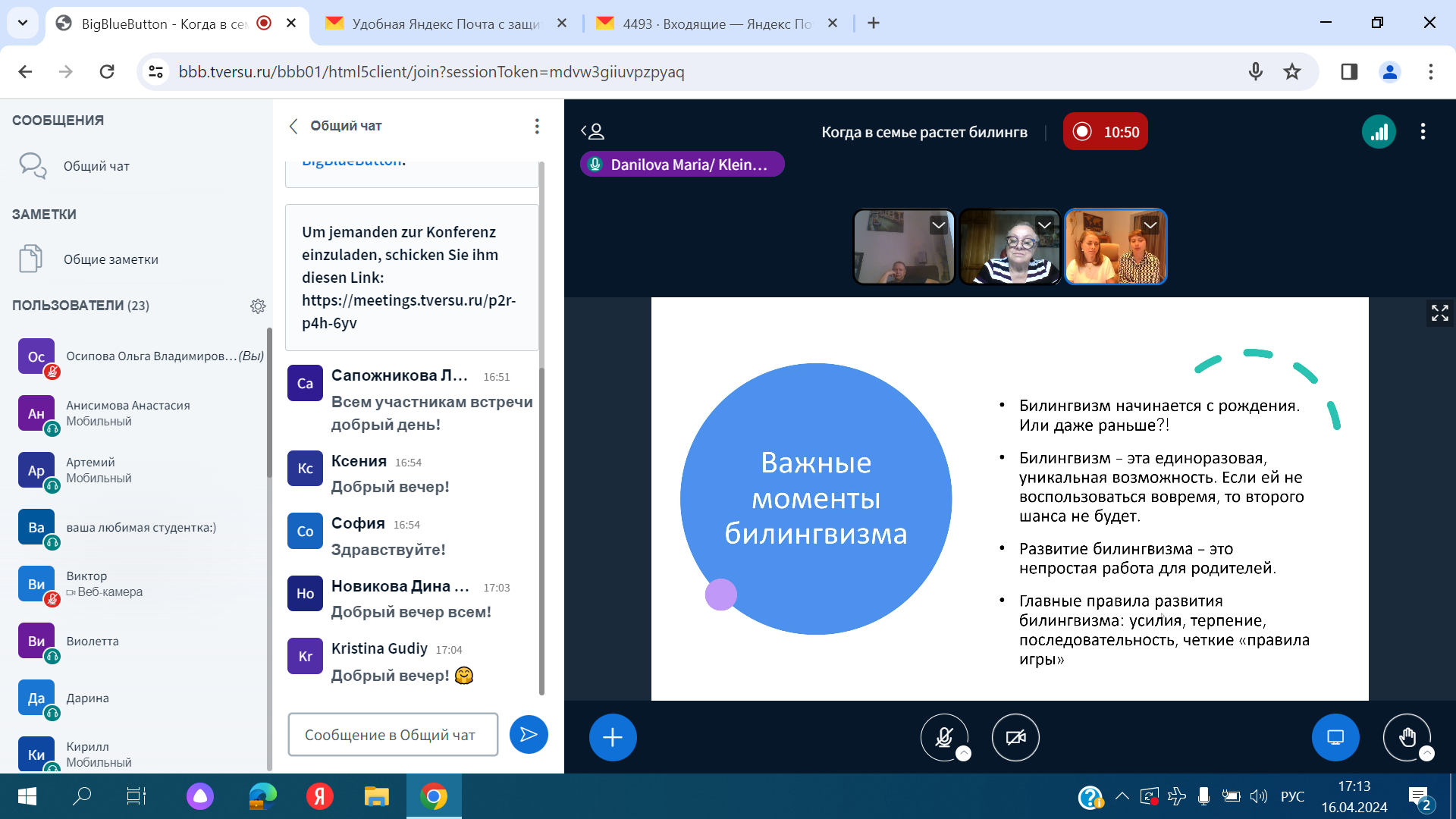 Ссылка для подключения: https://meetings.tversu.ru/p2r-p4h-6yv