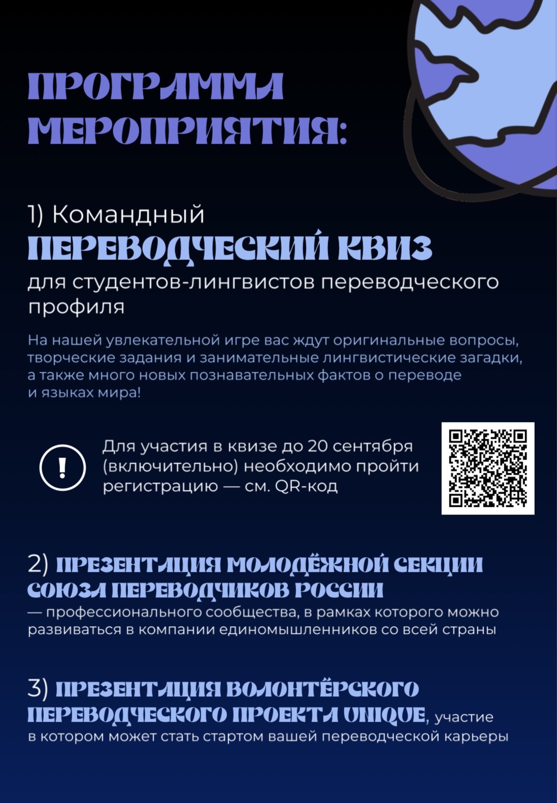 К участию в квизе приглашаются студенты переводческого профиля (для участия необходимо зарегистрироваться).
