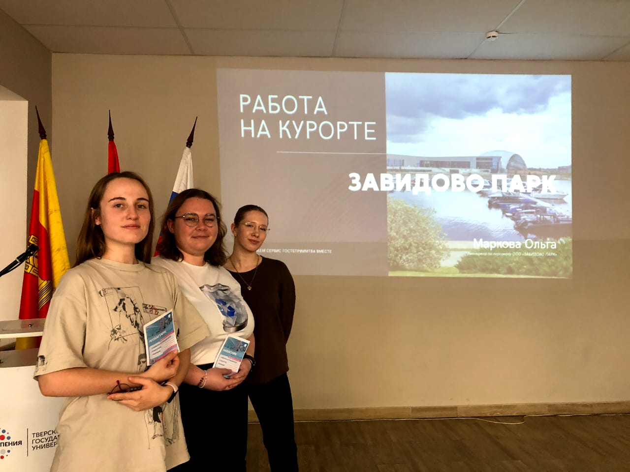Представители компании "Завидово Парк" поделились полезной информацией о новом курортном комплексе и множестве открытых вакансий, на которых они приглашают студентов нашего университета. Несмотря на то, что наша специальность напрямую не связана с гостиничным сервисом, мы убедились, что каждый может найти себе вакансию по душе: от СММ-специалиста до хостес и менеджера. Благодарим представителей парка за предоставленную возможность.