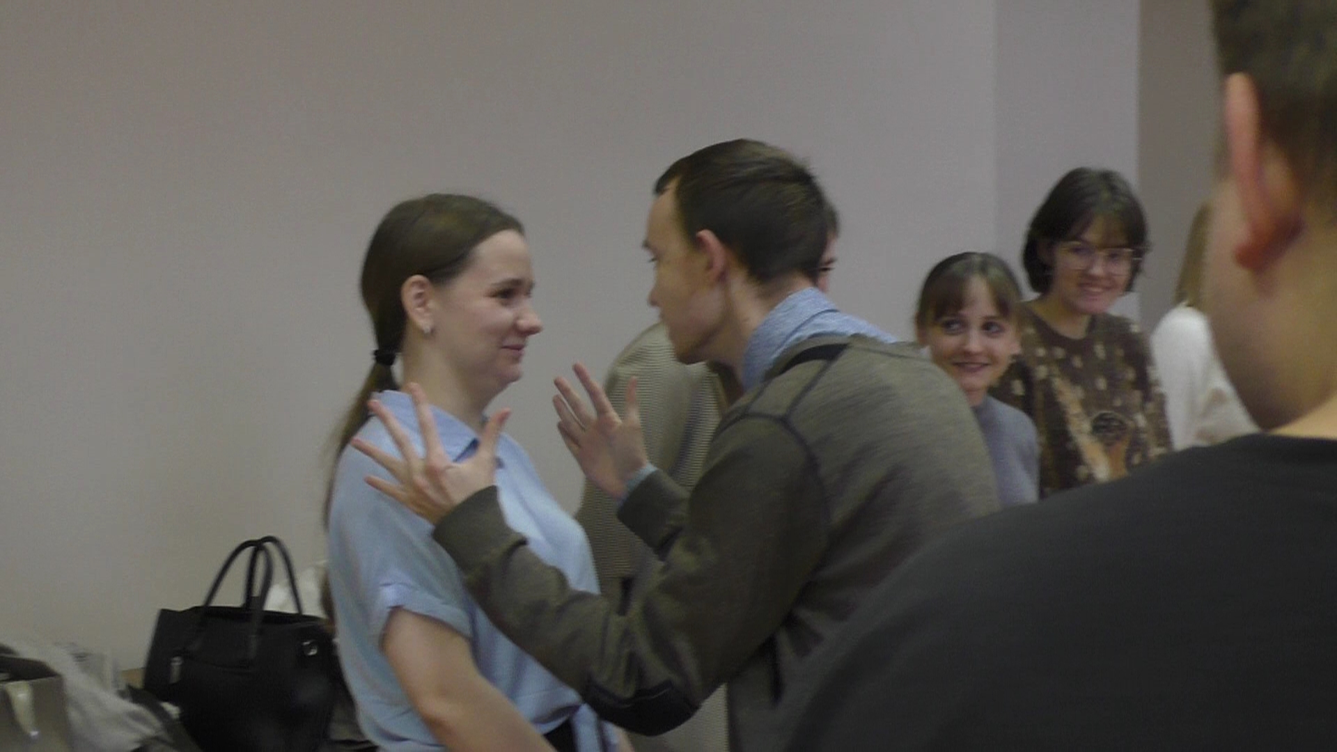 Максим Васильевич провёл для будущих учителей комплексные актёрские тренинги, на которых студенты поработали над вниманием, фантазией, воображением и разными эмоциями. Участникам удалось попробовать себя в разных ролях и ситуациях, зарядиться энергией, почувствовать в себе свободу и раскрепощённость. Встреча получилась очень яркая и неожиданная, нам предстоит ещё долго обсуждать её и размышлять о применение увиденных приёмов в обучении иностранным языкам.