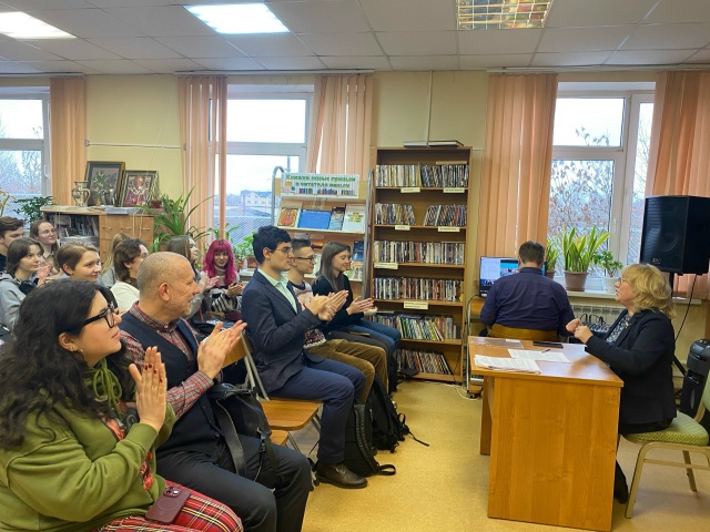 Директор специальной библиотеки Светлана Макарова рассказала об основах тифлокомментирования, особенностях подготовки тифлокомментария к различным объектам искусства и предложила студентам стать волонтёрами проекта «Хождение не за три моря», разработав и представив пользователям специальной библиотеки, людям с ограниченными возможностями зрения, свой тифлокомментарий любимых достопримечательностей города Твери.