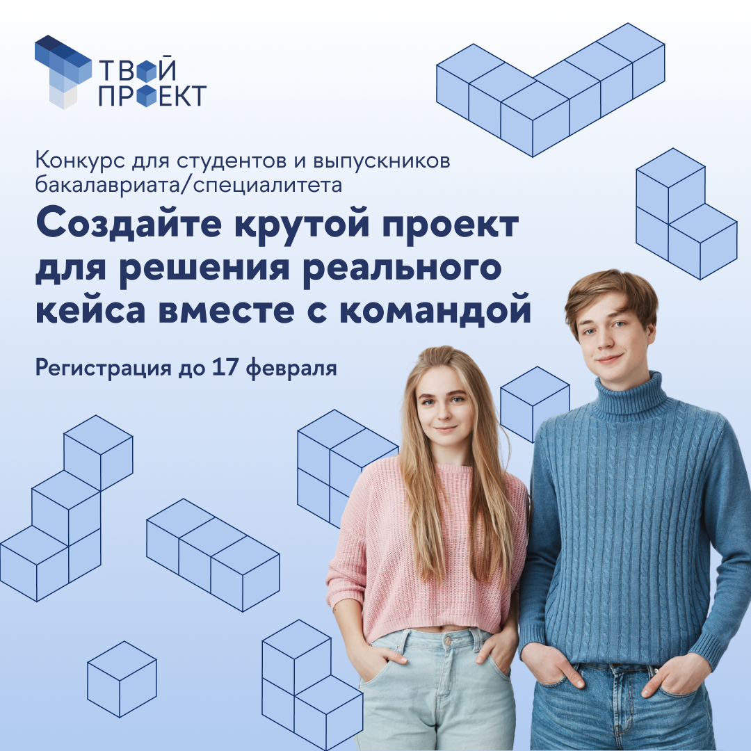 Конкурс «Твой проект» проводится уже четвертый год и дарит студентам российских вузов возможность проверить свои силы в решении реальных практических кейсов, приобрести ценный опыт, познакомиться с новыми талантами и совершенствовать навык командной работы. Все задания разрабатываются индустриальными партнерами и подразделениями Высшей школы экономики специально для конкурса. Принять участие могут студенты старших курсов и выпускники бакалавриата/специалитета.