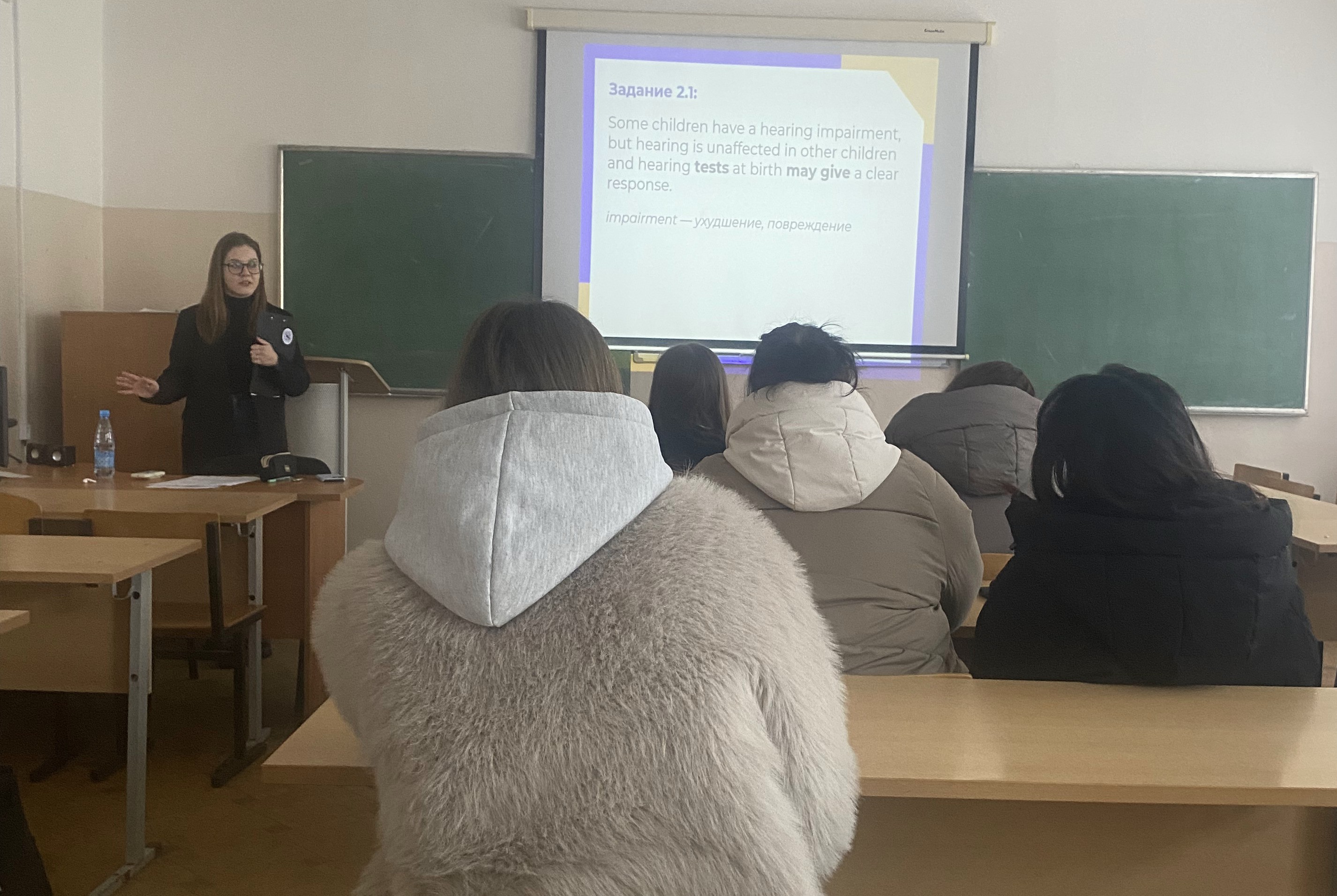 29 января 2026 года в рамках дисциплины «Профессиональная социализация со знанием иностранных языков» студенты 5 курса заочной формы обучения встретились с ассистентом кафедры герменевтической лингводидактики и английской филологии Татьяной Сергеевной Миняевой, редактором в проекте по переводу медицинских брошюр.