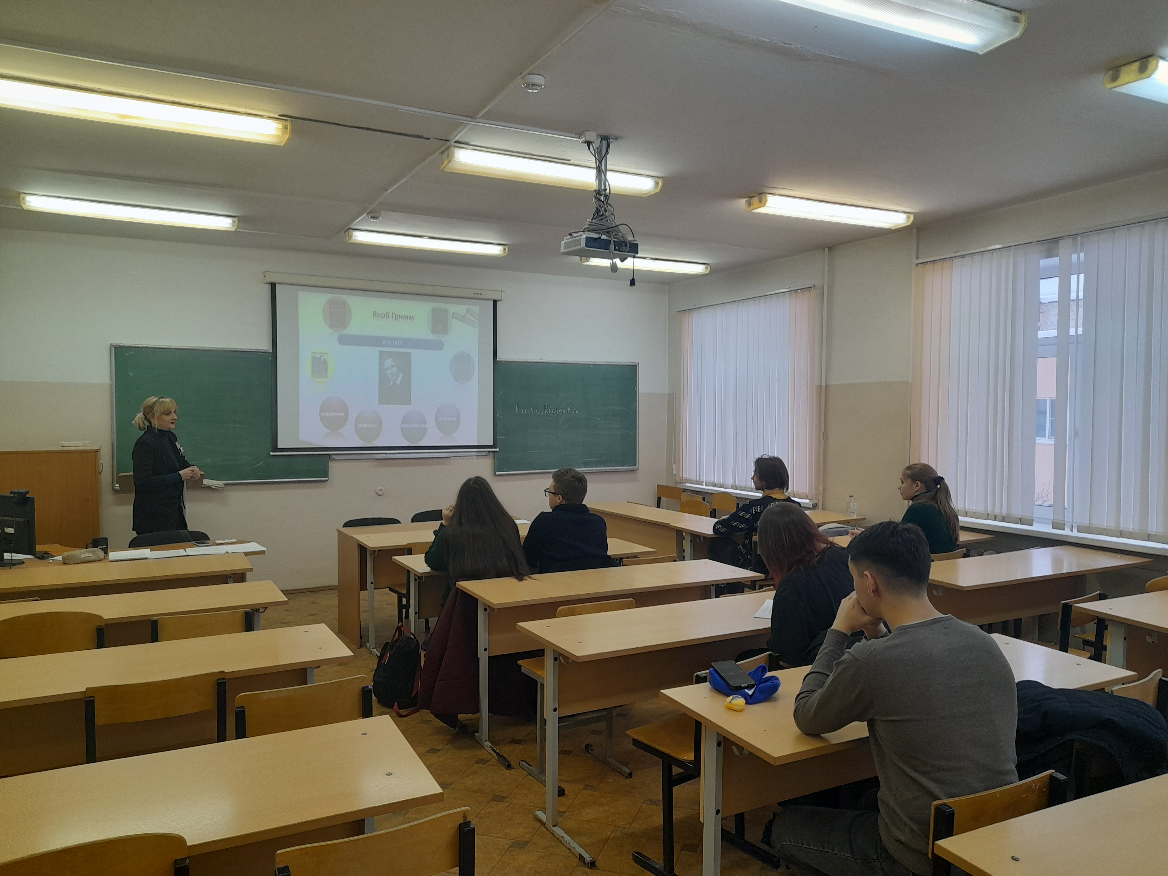14 февраля 2026 года Школа юного лингвиста встречала старшеклассников города на пятом занятии. Лекцию, под названием «Якоб Гримм. ПилиГрим’ исторической лингвистики» подготовила и провела доцент кафедры теории и истории обучения иностранным языкам и немецкой филологии, кандидат филологических наук Юлия Владимировна Ланских, а помогал ей студент 4 курса факультета ИЯ и МК Матвей Ивакин. Слушатели школы познакомились с Якобом Гриммом, поразмышляли о том, кто такой сказочник и что такое миф, почитали немецкие сказки, узнали, что такое аблаут и первое передвижение согласных. Ну, а в завершении юных лингвистов ждала викторина, в которой они почувствовали себя настоящими знатоками германо-скандинавской мифологии...